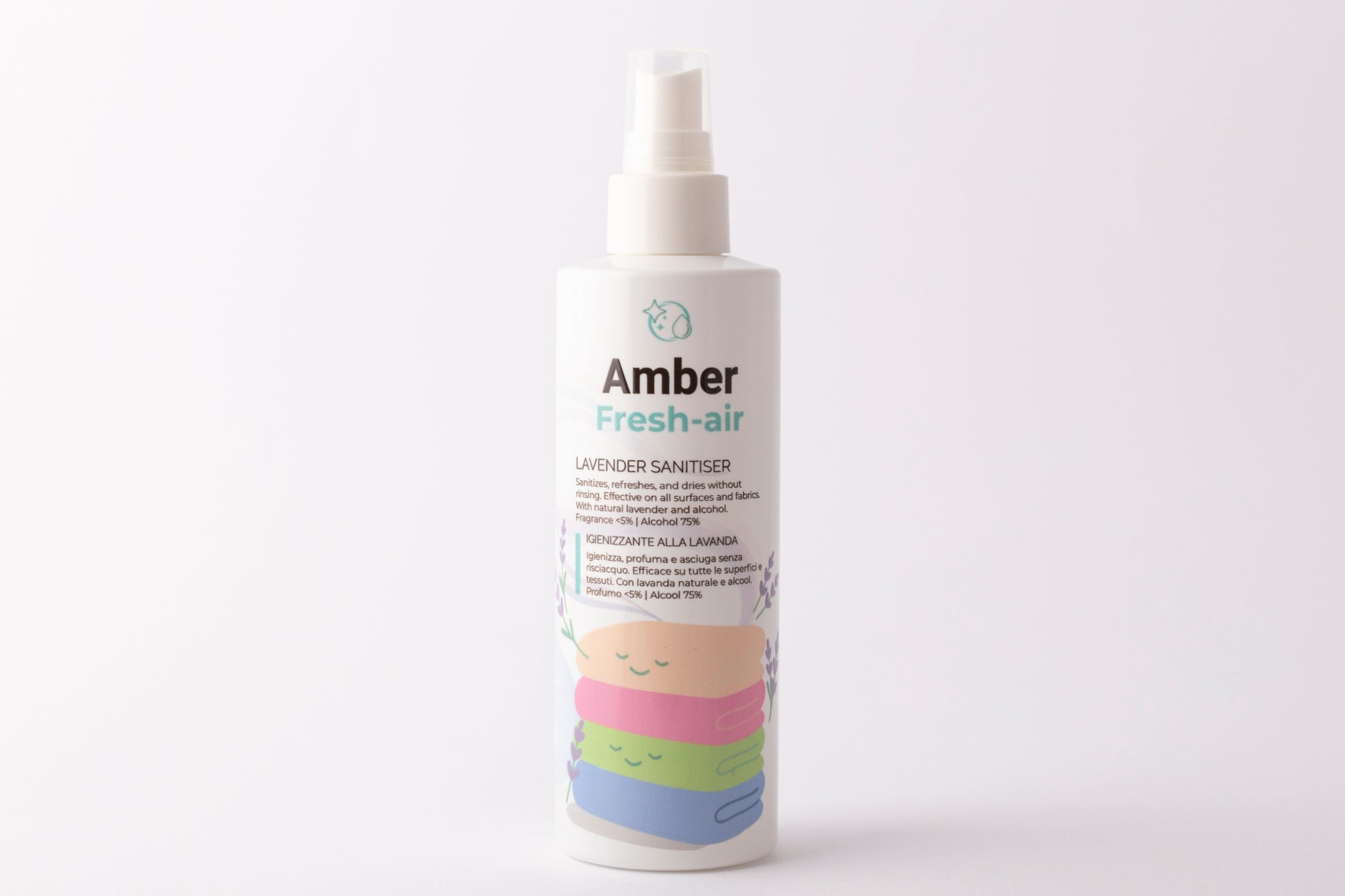 Scopri la freschezza istantanea con Amber Fresh Air, lo spray igienizzante profumato alla lavanda formulato per igienizzare mani, superfici e tessuti in modo rapido, efficace e senza risciacquo. Grazie a una miscela naturale con il 75% di alcol e olio essenziale di lavanda, Amber Fresh Air elimina impurità e odori, lasciando un gradevole profumo rilassante.